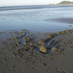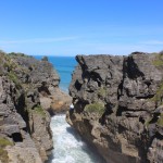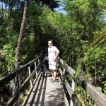 An der Westküste angekommen haben wir einen weiteren Stopp an einem Strand namens ship creek gemacht, wo es einen schön angelegten Spazierweg durch eine landschaftlich interessante (aber für die Westküste Neuseelands typische) Kombination von Strand und Regenwald gab. Hier mussten wir zum ersten Mal feststellen, dass unser extra gekauftes, kindertaugliches Mückenmittel (mit dem wir uns brav alle eingeschmiert hatten) nur bedingt effektiv ist. Immerhin ein Trost: Das Kind scheinen die hiesigen Mücken, einschließlich der absolut fiesen sandflies, von uns allen am wenigsten zu mögen.