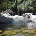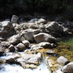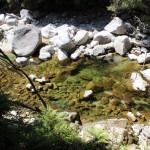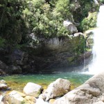 An der Straße des Passes haben wir einen Zwischenstopp mit Spaziergang zu einem Wasserfall an einem beeindruckenden Steinstrand gemacht. Da war für jeden von uns was dabei: man konnte Staudämme bauen, Steinmannderln stapeln und Steine annagen. Am Fuß des – nebenbei gesagt wunderschönen – Wasserfalls stehen übrigens noch die Betonfundamente eines wasserbetriebenen Generators, den man seinerzeit (s. o.) für den Straßenbau gebraucht hatte.