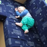 Der Swimmingpool des Campingplatzes hat ihn einigermaßen kalt gelassen – im wahrsten Sinne des Wortes, denn er war nicht beheizt und so hielt sich der Ausflug ins Wasser zeitlich doch sehr in Grenzen. Was dafür umso besser ankam, war der Ausflug an den Strand. Hier konnte Sand gegessen (scheint ausgenommen gut zu schmecken, bei den Mengen, die das Kind in sich hinein gestopft hat!), auf Treibholz herumgenagt und Sandburgen kaputt gemacht werden.